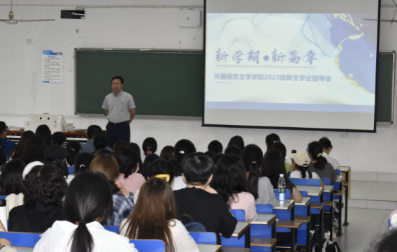 最后,胡元江副院长对本次学业指导会进行了总结并提出了殷切的希望:相信2023级新生们只要带着爱出发,爱老师、爱同学、爱专业,就一定能在语言的世界里展翅高飞!