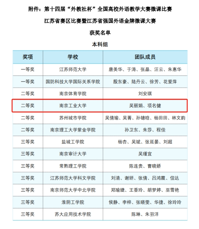 本次大赛设立本科组、研究生组、日语组等组别举行,经过前期精心准备,新伟德国际1946日语系张备、马琼老师团队获得日语组最高奖一等奖,英语系吴丽娟、项名健老师团队获得本科组二等奖。