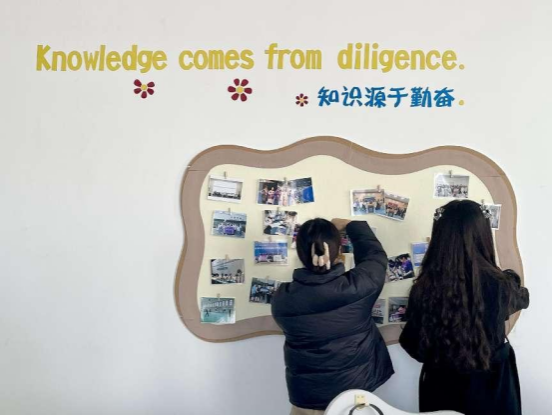 活动中,研会同学在认真打扫地面、擦拭桌椅、清理闲置物品后,满怀热情地投入到研习室的装饰工作中:在窗台上摆放绿植,为学习空间注入一抹清新活力;两两合作搬运桌椅,将部分桌椅“汰旧换新”;在桌角设置个性化名牌,方便快速找到位置;给坐凳换上“冬装”坐垫,为整个研习室增添了温馨舒适;安装爱心插座,满足同学们的用电需求···此外,同学们还手工制作了墙贴,用毛毡和贴纸等工具,将承载着同学们精彩回忆的照片展示出来,用心打造出一面独具外院特色的展示墙。